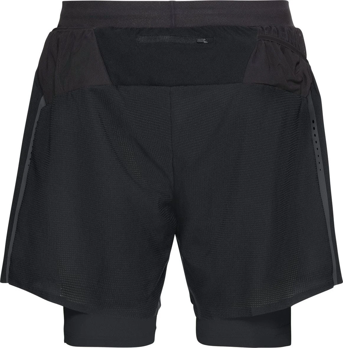 Light and airy on the outside, and quick-drying on the inside, our Axalp Trail 15cm 2-in-1 Shorts might just be the only running shorts you need. Crafted in a technical blend of 100% recycled polyester, with elastic inserts for complete freedom of movement, the outer shorts feature a fitted waistband, subtle reflective details and a rear zip pocket to keep your essentials safe when running. The longer inner shorts provide excellent moisture wicking and quick drying, while providing adequate support. Lightweight and feature-packed, the ODLO Axalp Trail 15cm 2-in-1 Shorts take hybrid running short design to new heights.