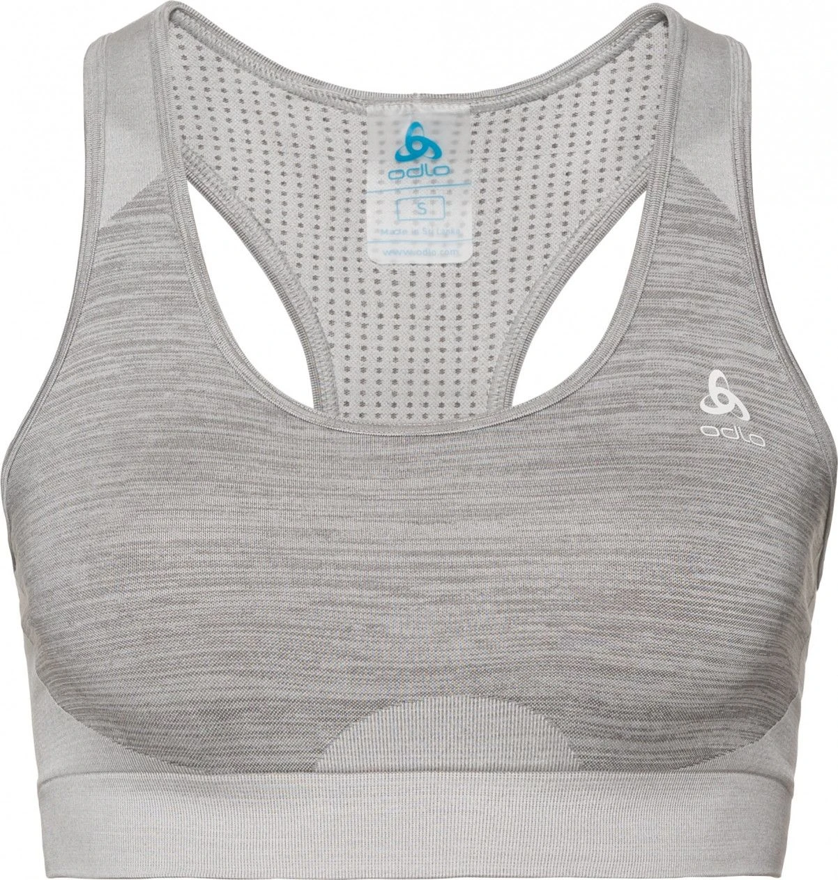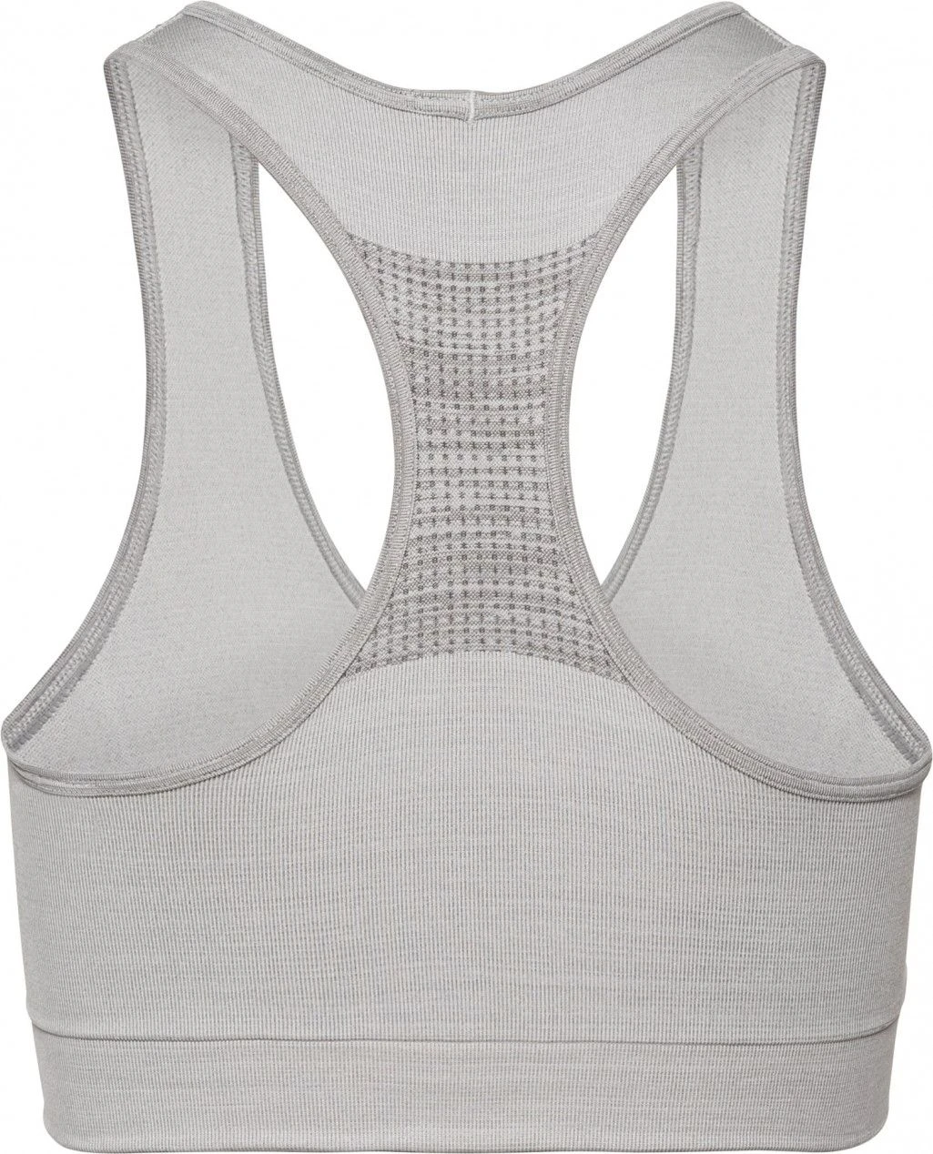 Designed to give you just the right amount of support, this ultra comfortable and stylish sports bra features seamless ventilation to keep you cool during summer workouts. Integrated seamfree ventilation zones increase airflow without compromising on support when you’re training hard in warm temperatures. Ribbed structuring on the sides provides a little extra support, while the fabric’s high elastane content ensures a flattering, supportive fit. The low neckline and racerback construction ensure the perfect shape for fitting under every top, although the attractive melange fabric means this is one sports bra that doesn’t need covering up.